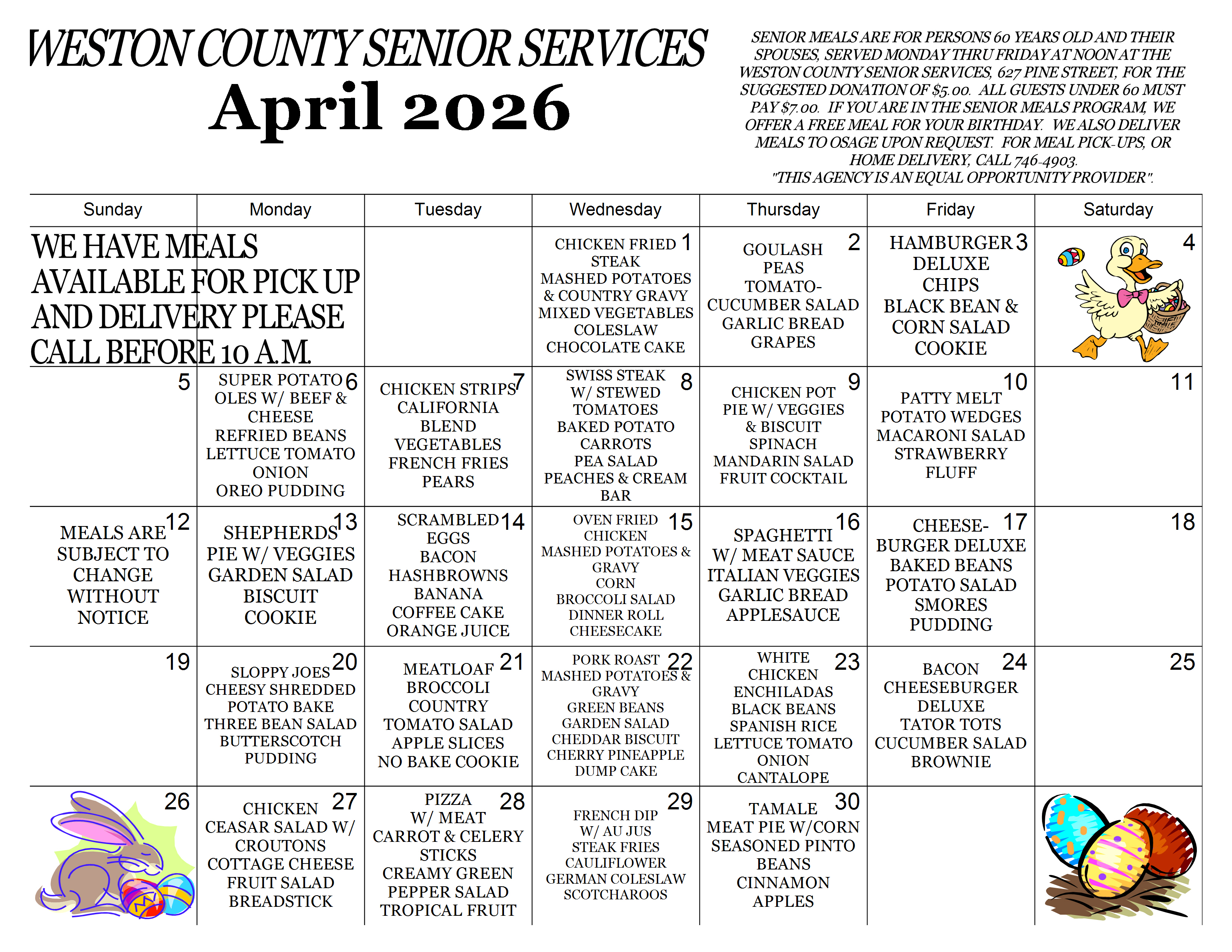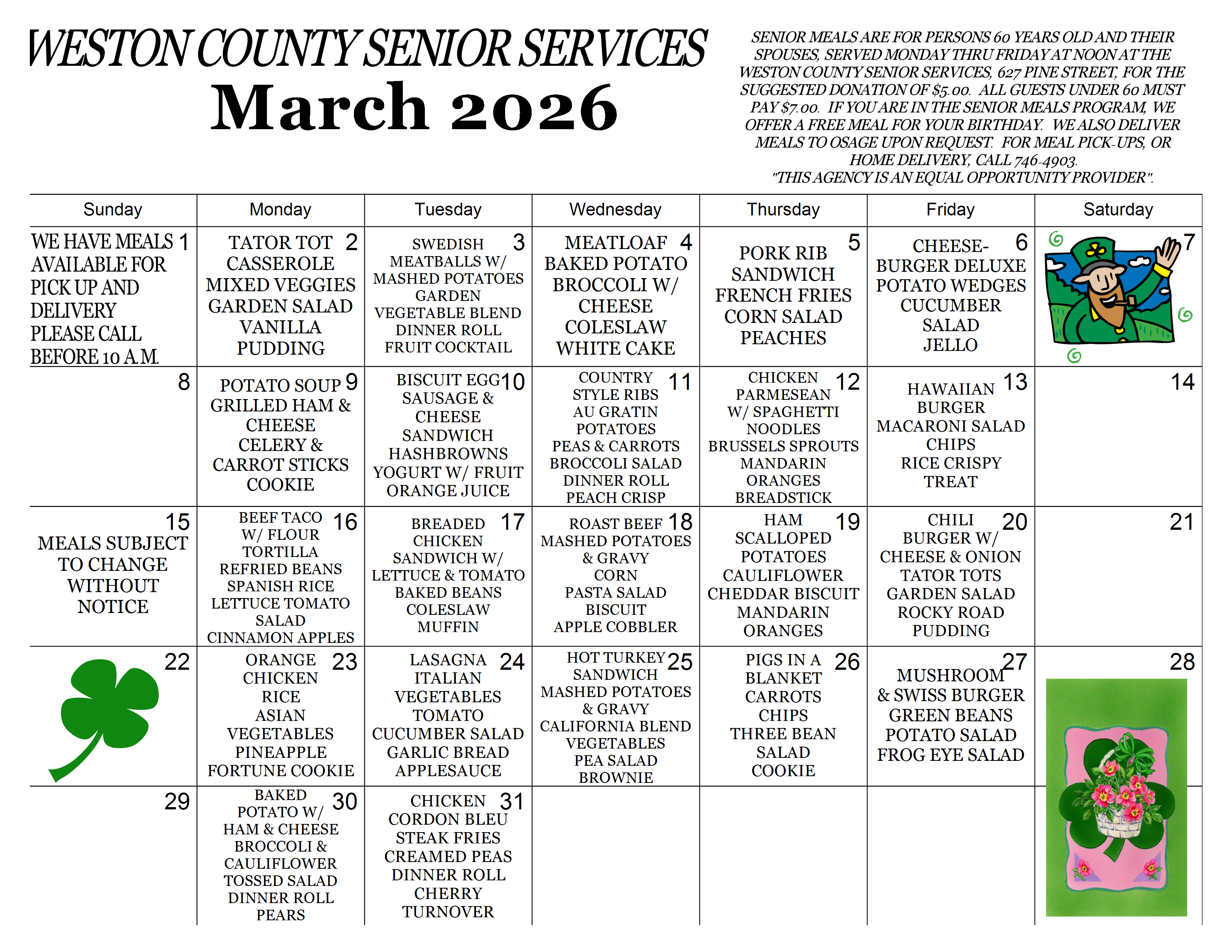 Newcastle Meals Menu