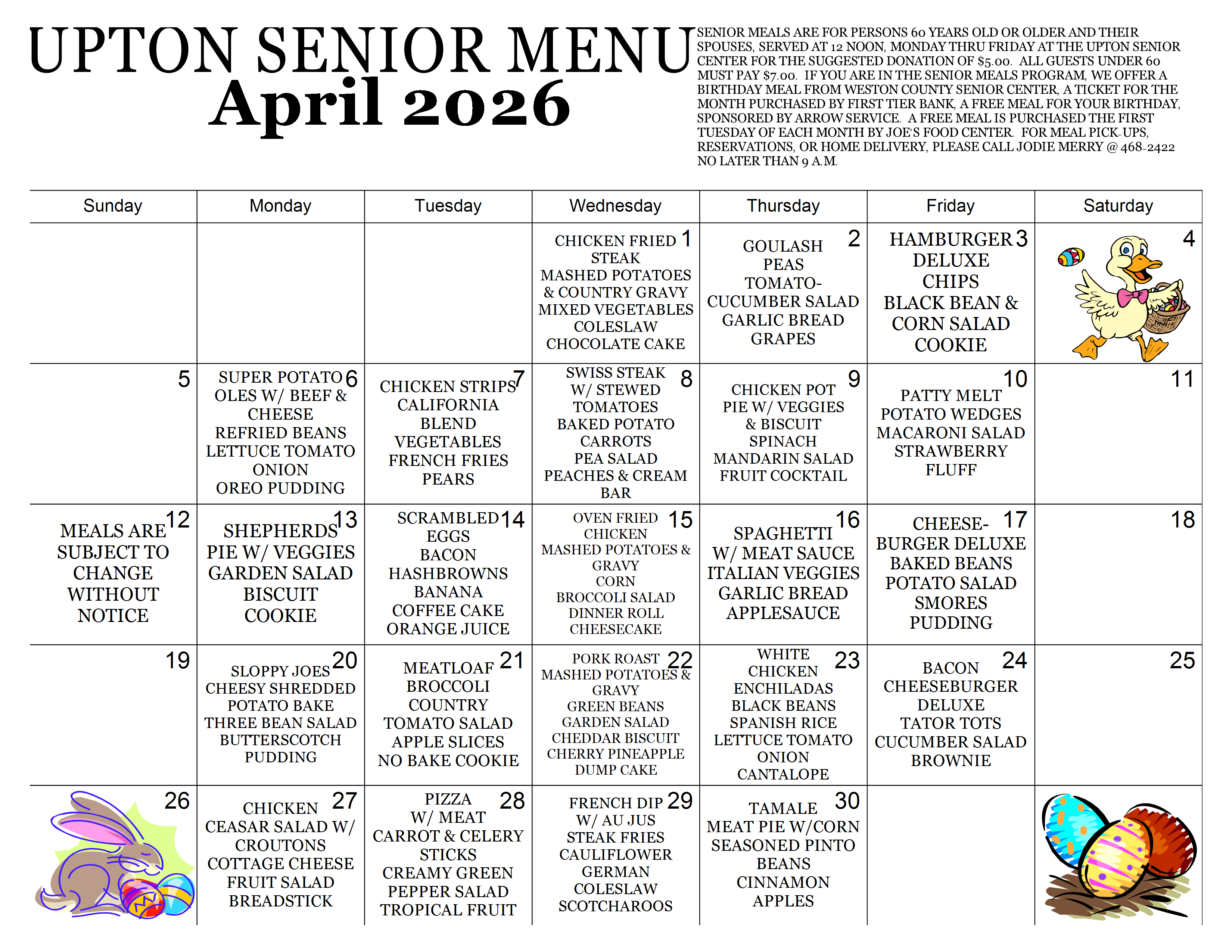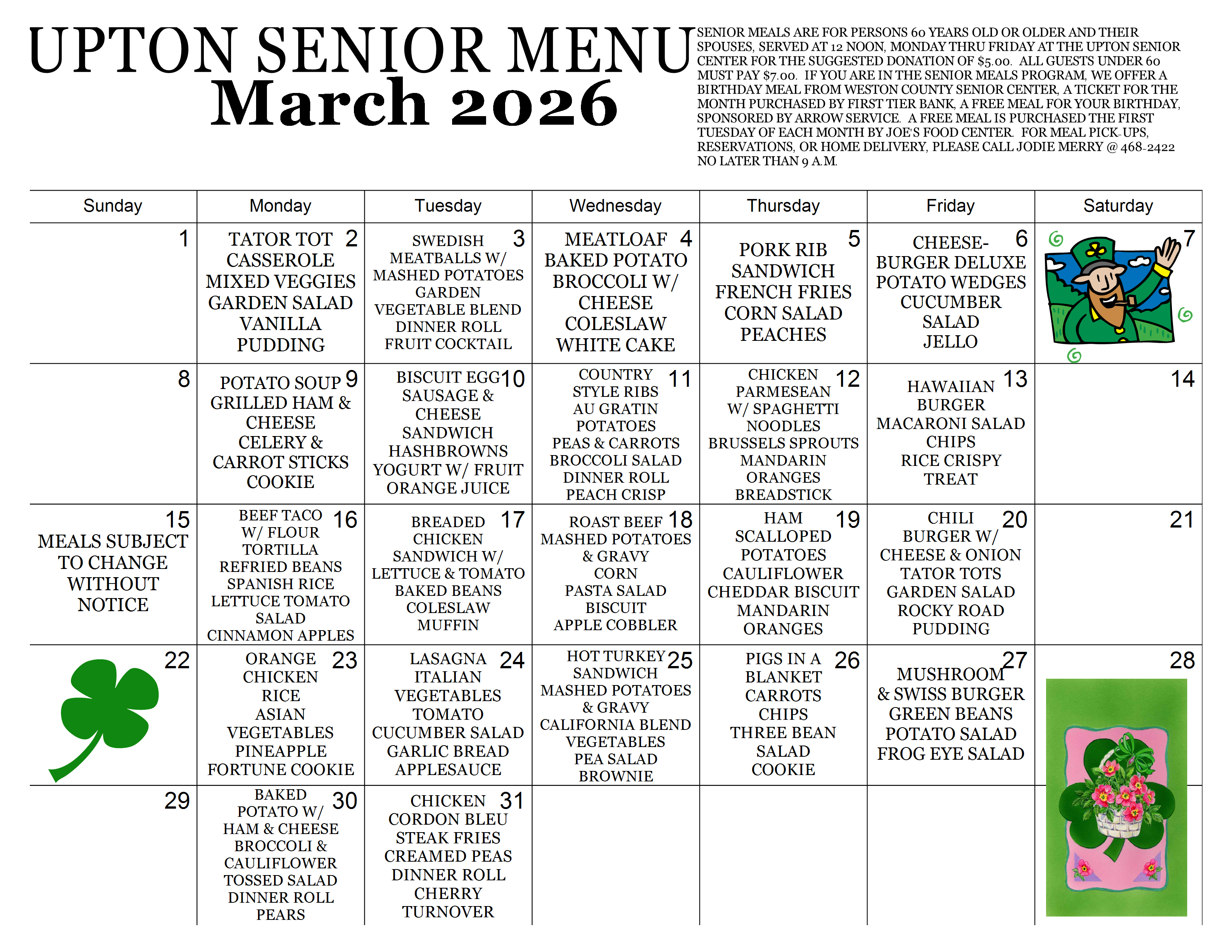 Upton Meals Menu